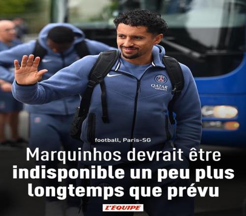 马尔基尼奥斯在法甲第5轮巴黎0-1负于马赛的比赛中左股四头肌受伤,最初预计将缺阵两到三周。
