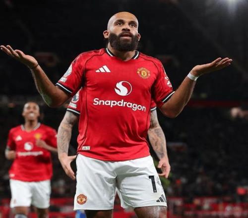 不过,在阿莫林的球队,姆伯莫的日子还是相当舒服的。整个10月,曼联右翼在三场俱乐部赛事里打进4球,球员本人也是 成功拿到了生涯首个英超月最佳的奖项,进入11月,在对阵诺丁汉森林一战中与进球无缘之后,姆伯莫还是在对阵热刺的比赛里打开了进球账户:在球队第一波次的进攻中,姆伯莫被队友的传中无情踢倒,在禁区内踉踉跄跄,但他并没有放弃,临时到了中锋位置依旧奔跑不止,这样的积极性,也让他很快等来了属于自己的机会:随着阿玛德调整后左脚送出精准传中,在人群中蛰伏许久的姆伯莫及时杀出,头球破门帮助曼联拿到了领先。